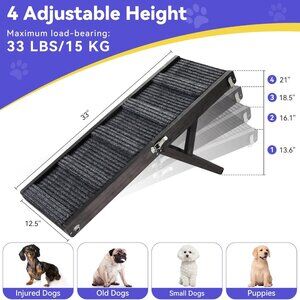 ✅【4 Adjustable Height】 The dog ramp have 4 adjustable height: 13.6'', 16.1'', 18.5'' and 21'' available, you can choose the appropriate height according to your needs, helping pets get on and down sofa, and step in ease.