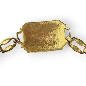 Rare brushed satin gold plated chain bracelet, featuring an ornate central panel with a raised Sigma Phi Epsilon shield symbol (fraternity founded in 1901)
