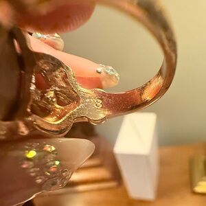Vintage Gold Emerald Green Oval Gem Cocktail Ring Size 8