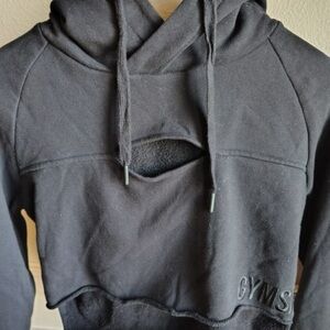 Gymshark Cropped Sweatshirt Hoodie Womens M? Black Long Sleeve Pullover Cutout