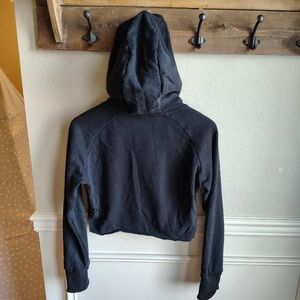 Stay stylish and comfortable with this black cropped hoodie. Perfect for casual outings and layering.