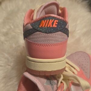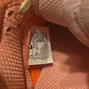 Vibrant coral sneakers with cream accents. Perfect for casual wear. Comfortable and stylish design.
