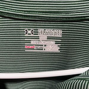 Under Armour pullover with green stripes. Features a comfortable fit. Lightweight. Quarter zip.