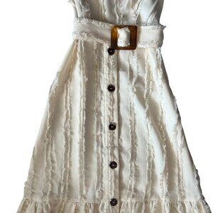 Moon River Button Front Belted Midi Dress Cream Size XS Cottagecore Boho Coastal