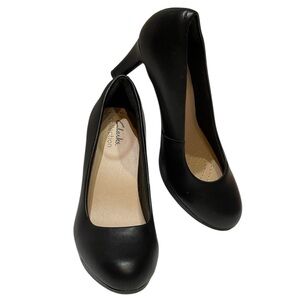 CLARKS AMBYR JOY WOMENS BLACK LEATHER PUMPS SZ 6M EUC