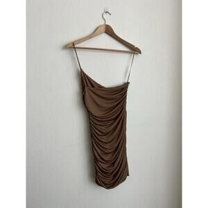 Fashion Nova dress one shoulder brown Ruched Stretch Size Small
