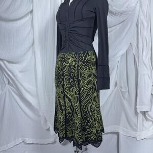 Indie Grunge Fairy Y2K Vintage Black Green Floral Midi Skirt (XL)