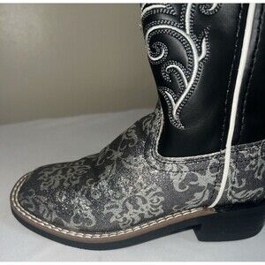 OLD WEST KIDS SQUARE TOE BLACK METALLIC SILVER BOOTS SIZE 11