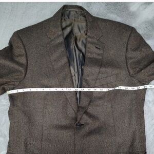Men's luxury Brioni all season cashmere jacket with a chocolate brown tweed pattern. Excellent condition. No holes or stains. Smoke free home. Fast shipping. Measurements in photos.
