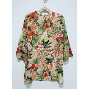 J Jill Dress Womens Medium Tropical Floral Bell Sleeve Tassel Tie Tunic Beachy
