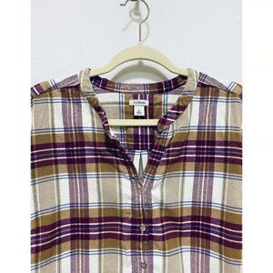 LL Bean Top Womens Large Maroon Plaid Flannel Button Up Outdoor Hiking Grunge
