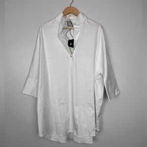 Crafted in a flattering silhouette from a crisp cotton poplin, the Blanc Willow Blouse is a must-have for year round dressing! Featuring a button front half-placket, folded collar, and high-low hem, this pullover pairs easily with everything from denim to leather pants season after season.