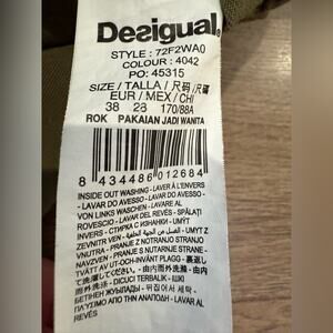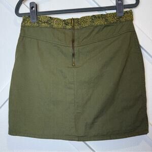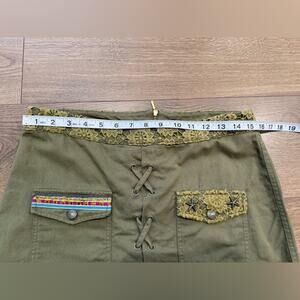 Desigual Olive Green Mini Skirt With Embroidery and Lace Details Size Small