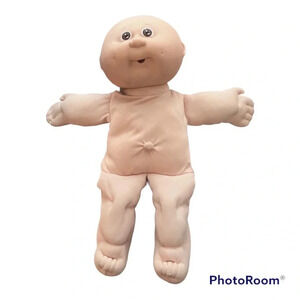 From 1985, can identify the year with the colour of handwriting on the bum. This one is pink. Brown eyes, dimples, and open mouth for pacifier. Comes with original outfit. Light green with elephant. Some marks on back of head, and pilling on the back from velcro. Super cute and looking for new home 😊