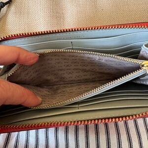 Anya Hindmarch coral colour leather zippy wallet