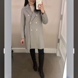 In Great condition. Chic light gray coat with a tailored fit. Ideal for layering.
