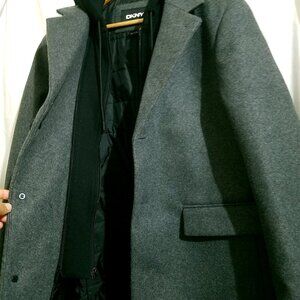 DKNY Men’s Gray Coat Large Removable Black Hoodie NWT