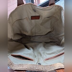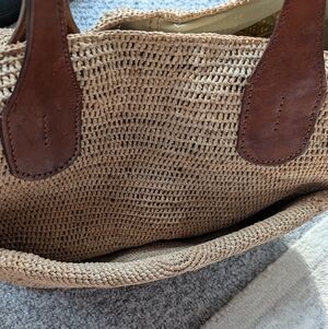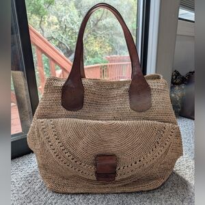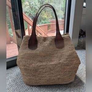Most amazing handwoven raffia tote bag. Has 2 silhouettes for when you're carrying tons of stuff to the beach vs out and about in the resort town. It's so stylish with leather handles and so many pockets inside and out. EUC.