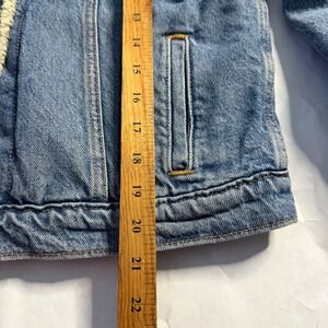 Levis Mens Sherpa Lined Denim Trucker Jean Jacket Blue Button Coat Grunge M
