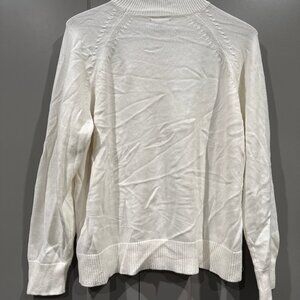 Quince Organic Cotton Mock Neck Sweater Womens L Gray Knit White