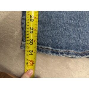 Excellent preowned condition. Distressed abrasions at front pockets and back right pocket are intentional; fabric, seams, zipper and button remain clean and functional. Leg hems are finished with no fraying or stains