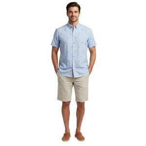 Johnston & Murphy Men's Light Blue Embroidered Short Sleeve Summer Shirt Size XL