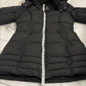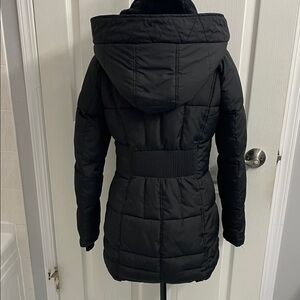 Parka Black Quilted Puffer Jacket With Detachable Hood Wind Water Resistant Sz S