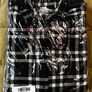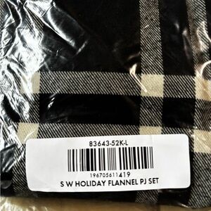 Classic plaid flannel pajamas in black and white. Soft and comfortable for a restful night. New in package.