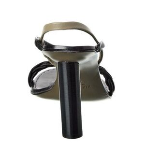 Interwoven detailing creates textural intrigue on the slim vamp strap of a warm-weather sandal set on a cylindrical stacked heel. • 3 3/4" heel • Leather upper, lining and sole • Imported
