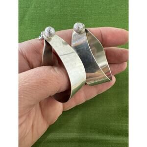 925 Sterling Silver Texture Ball Loop Post Earrings Minimalist '90's