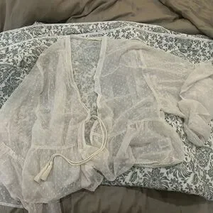 Experience comfort and elegance with this sheer white robe. Perfect for lounging or adding a touch of luxury to your sleepwear collection.