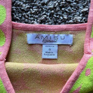 Pink & Green Flower Crop Top Womens Small Amisu Floral Nautical Aesthetic