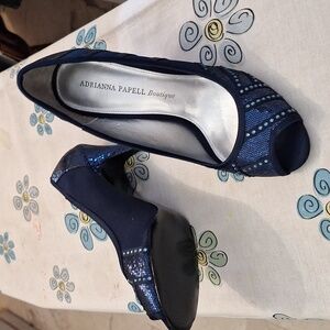 3/$20-Adrianna Papell Midnight Blue Sequin 3-inch Heels, Leather Soles, 8 1/2 M