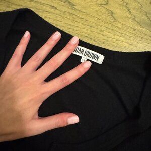 Joah Brown ribbed knit main long-sleeve split front henley top