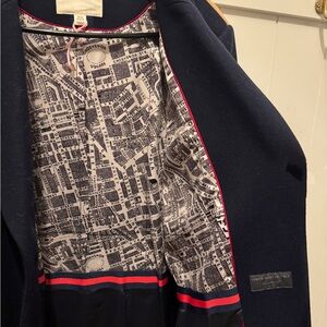 73% Italian wool 27% polyamide, lining 56% recycled polyester 40% polyester 4% elastane