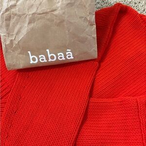 Vibrant red cardigan. Button-up front. Cozy and stylish.