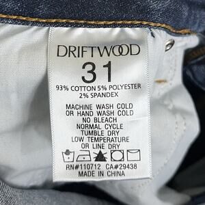 Medium/dark wash Audrey straight Jean by Driftwood size 31 x 29. Small flaw on leg (see pics), otherwise in great condition.