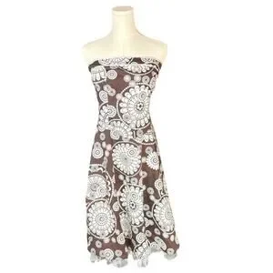 Y2K Ruby Rox Brown Floral Strapless Tube top A-Line Zip Up Lined Dress Boho Sz L