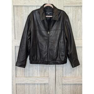 Dockers Men’s Genuine Leather Jacket Black Size Medium Y2K Bomber