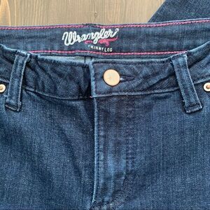 In excellent condition. Darker wash Wrangler women’s skinny jeans. Measurements: 14.5” waist laying flat, 9.5” rise, 31” inseam.