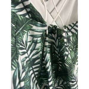 Banjul Dress Womens Large Green White Leaf Tropical Faux Wrap Cross Cross Back
