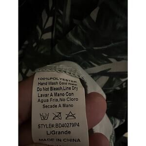 Banjul Dress Womens large Green White Leaf Tropical Faux Wrap Cross Cross Back. Condition is Pre-owned - Excellent. Shipped with USPS Ground Advantage.
