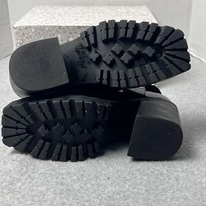 ShoeDazzle Enslee Boots Womens 7.5 Black Harness Lug Sole Block Heel Moto Style