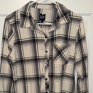 Chic checkered shirt by GAP. Features a black and cream design. Button-up front with a chest pocket.