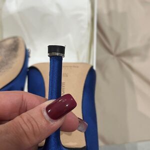 Chic Manolo Blahnik Hangisi Raso in a vibrant blue. Ideal for stylish events. These beautiful shoes were used once so very minor wear on the bottom of the shoes and as shown in video at the bottom of the heel and is the only reason why I will price them the way I will. 100% authentic size is 36.5 us 6.5