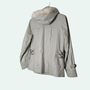 Luem Womens Faux Leather Jacket W/ Removable Faux Fur Hood & Buckle Accents Ligh