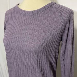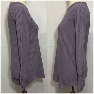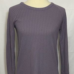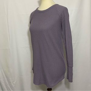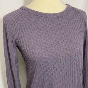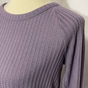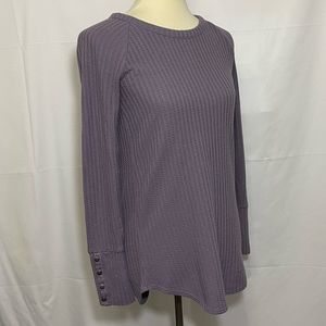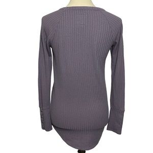 Chaser Waffle Knit Thermal Long Sleeve Top. Dusty purple. Round neck. Curved hem. Button details at cuffs. Great condition.