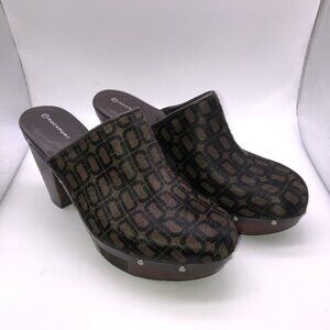 ROCKPORT adiPRENE By Adidas Brown Black Leather Heel Mule Shoes Women's Size 9.5. Condition is "Pre-owned".