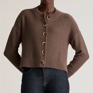 [NWT] Quince 100% Organic Cotton Cropped Cardigan in Heather Brown