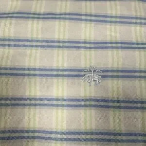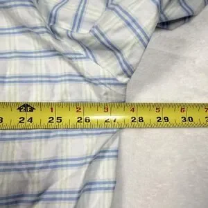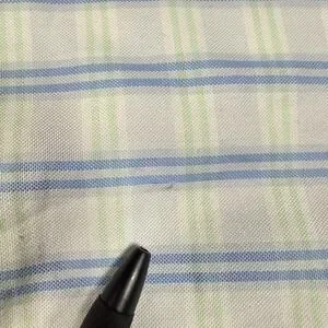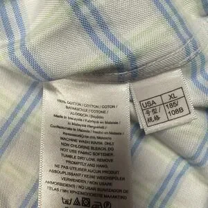 Color/Pattern: White base with blue and light green plaid stripe pattern.